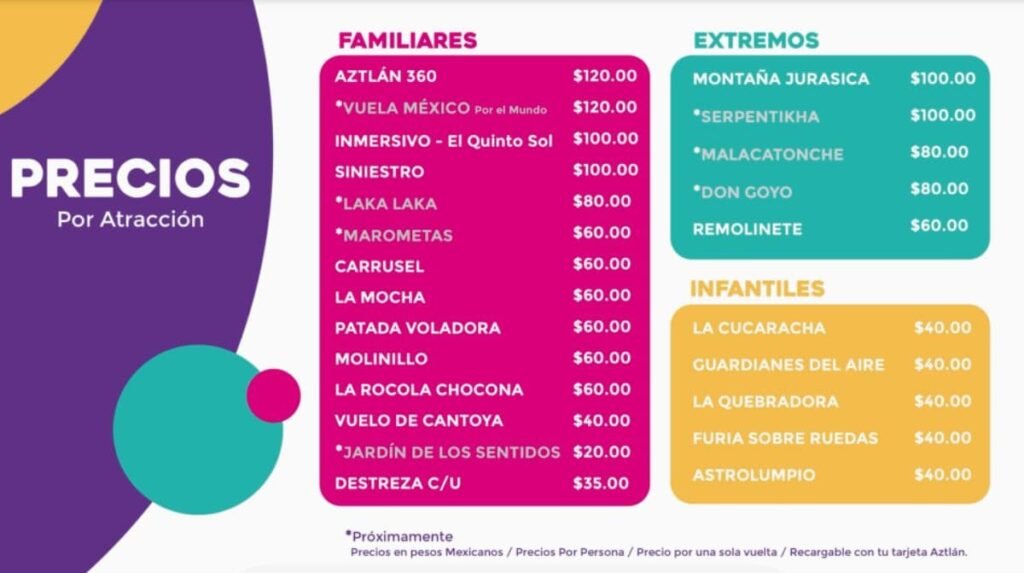 De igual manera, tendrás la oportunidad de pagar solamente por los juegos que quieras ingresar. El Parque ofrecerá una nueva manera de disfrutar de sus atracciones con su Aztlán Card, tarjeta que se te dará en la entrada, a cual podrás recargar con saldo dependiendo de los juegos a los que quieras ingresar.